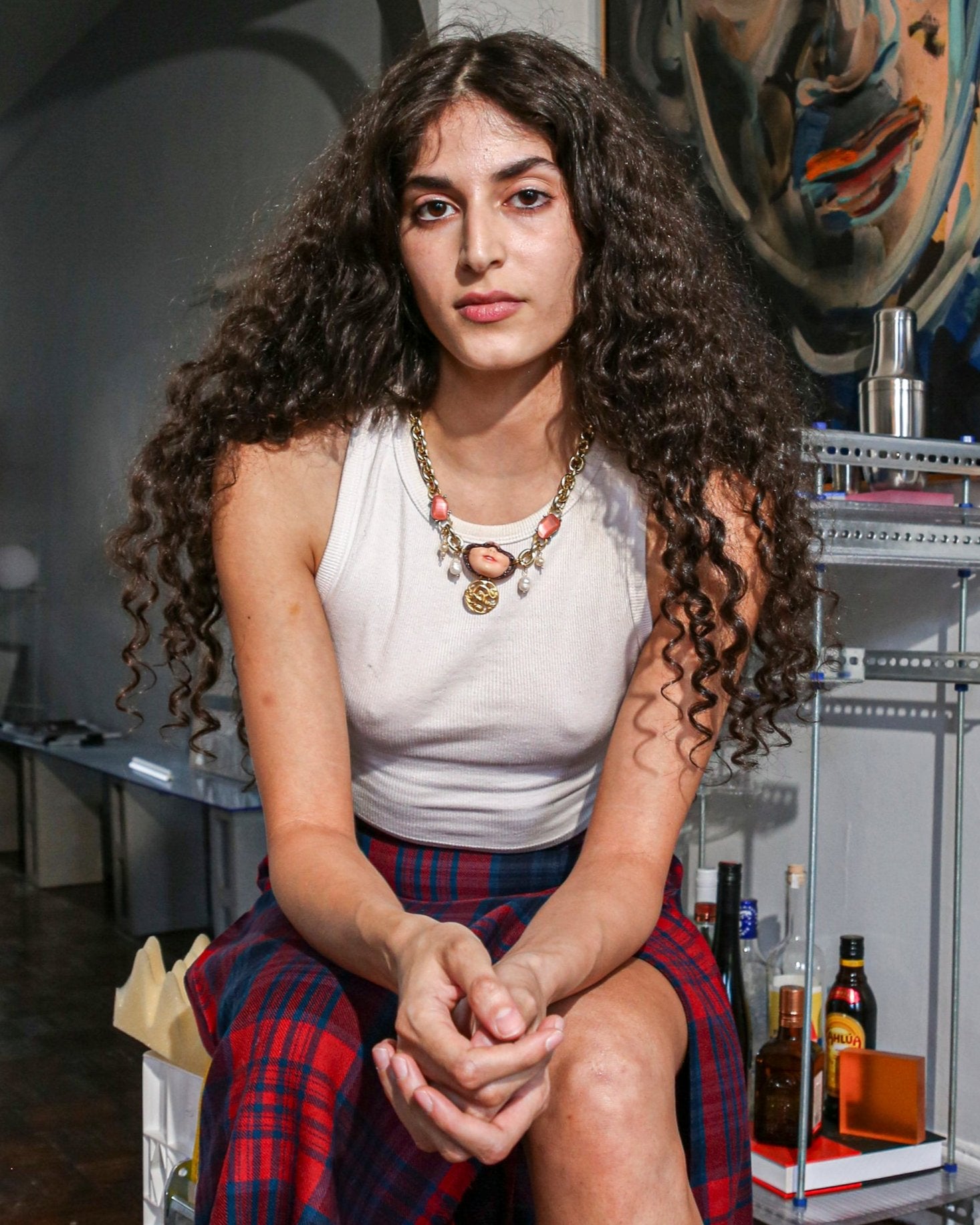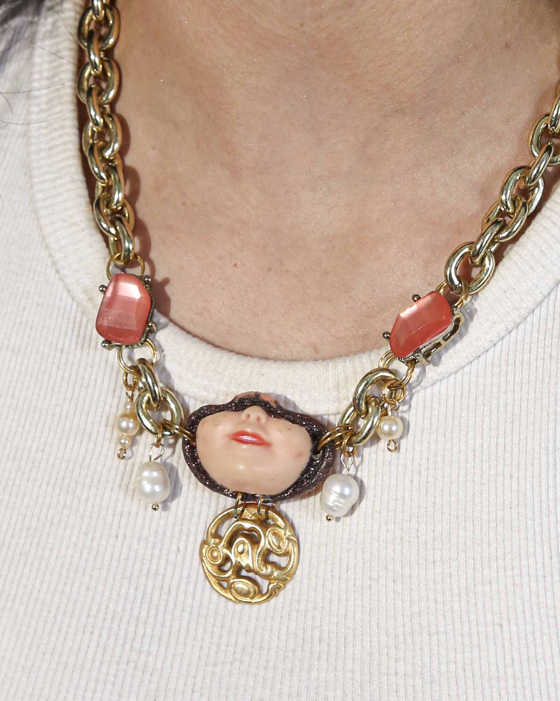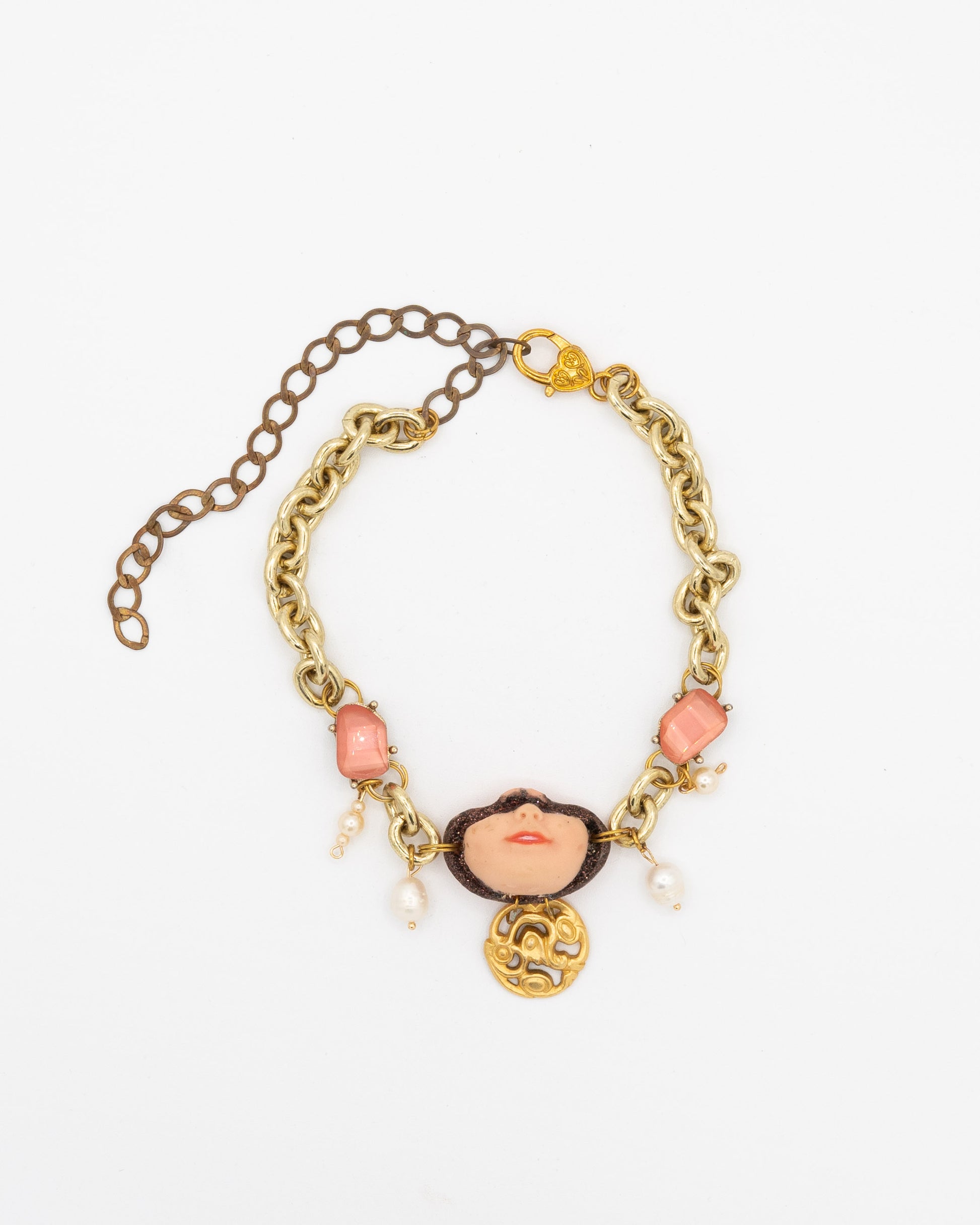 One of one made from collected gold chain and charms. Length is adjustable: