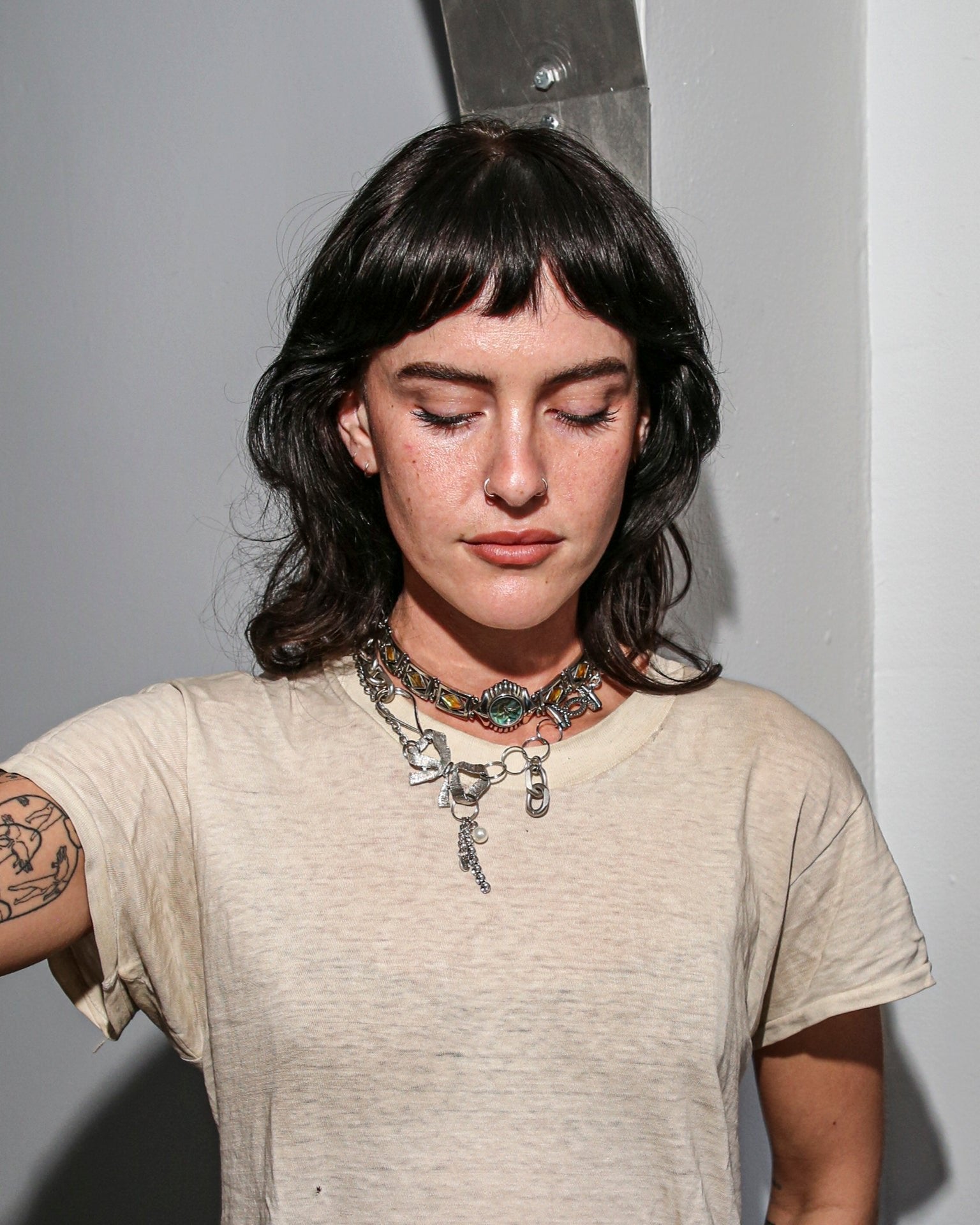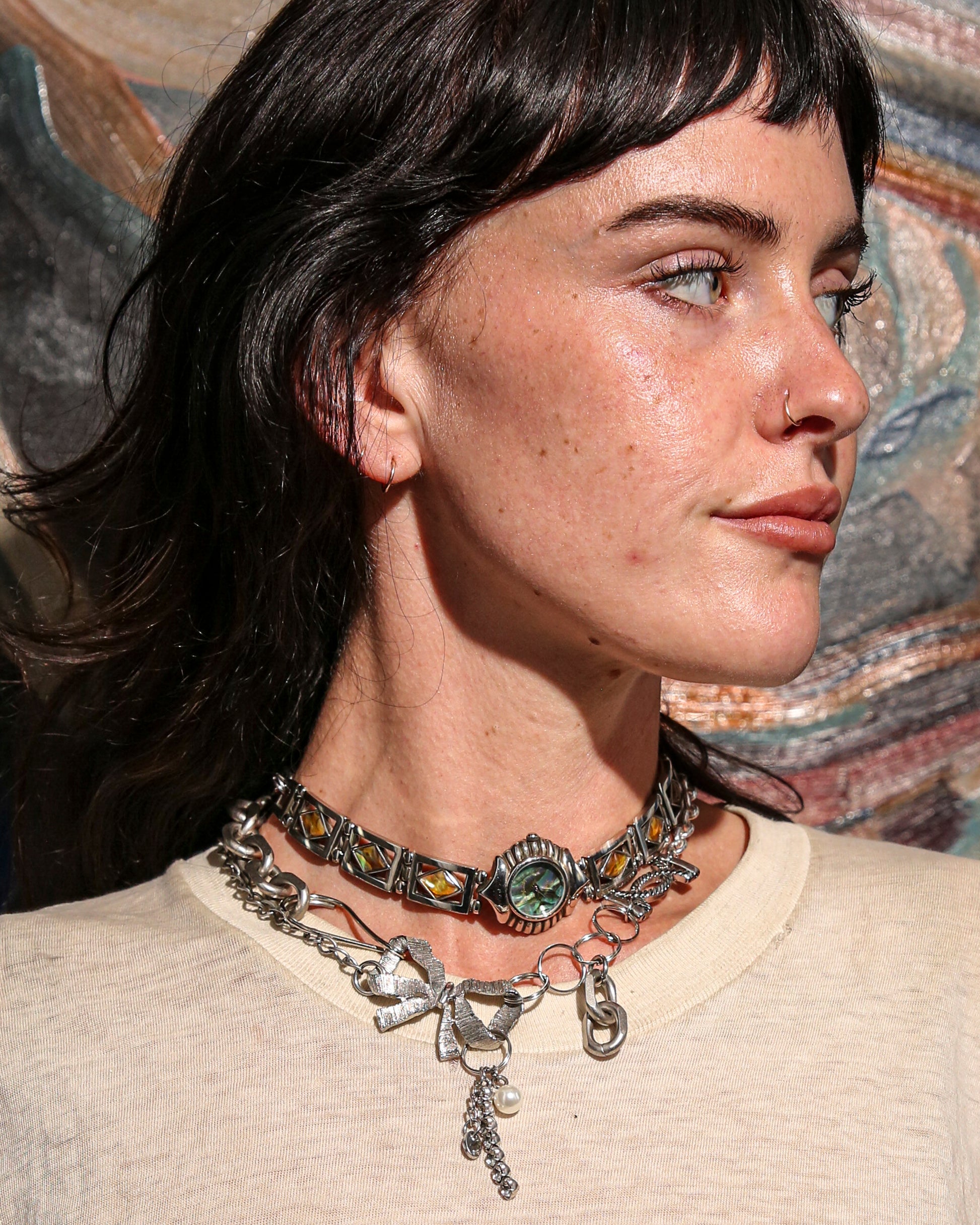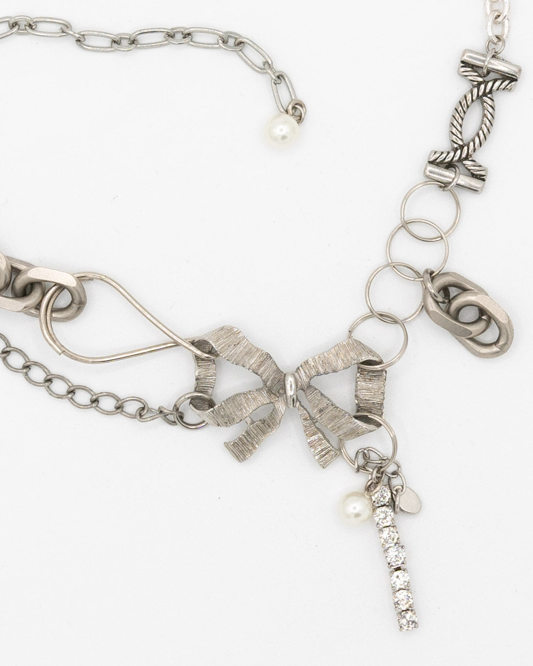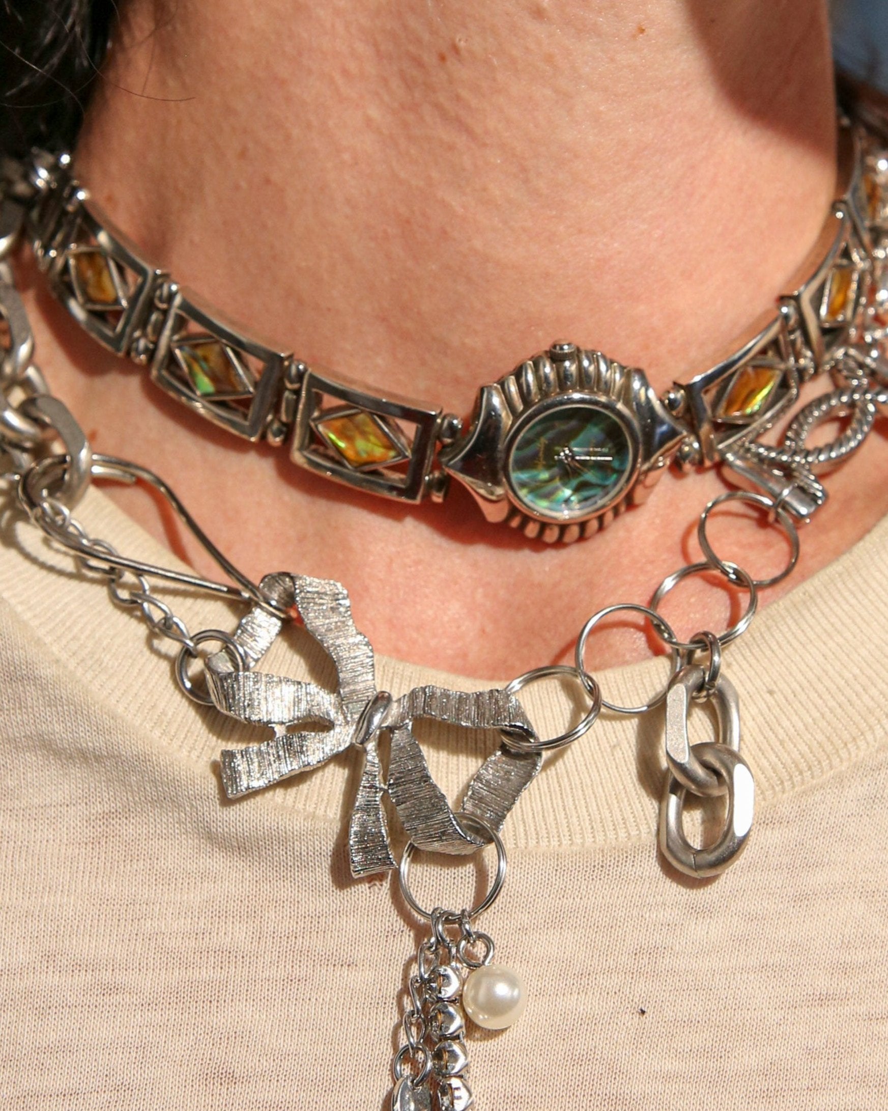 One of one made from collected silver chain. Length is adjustable:
