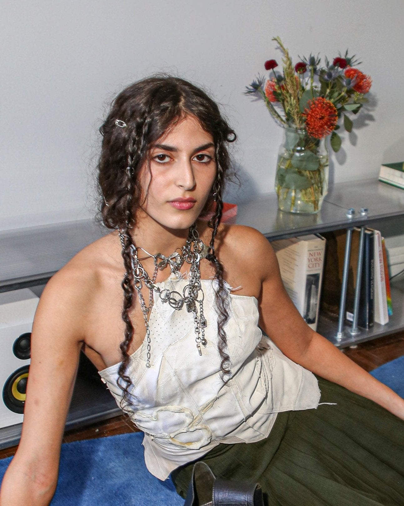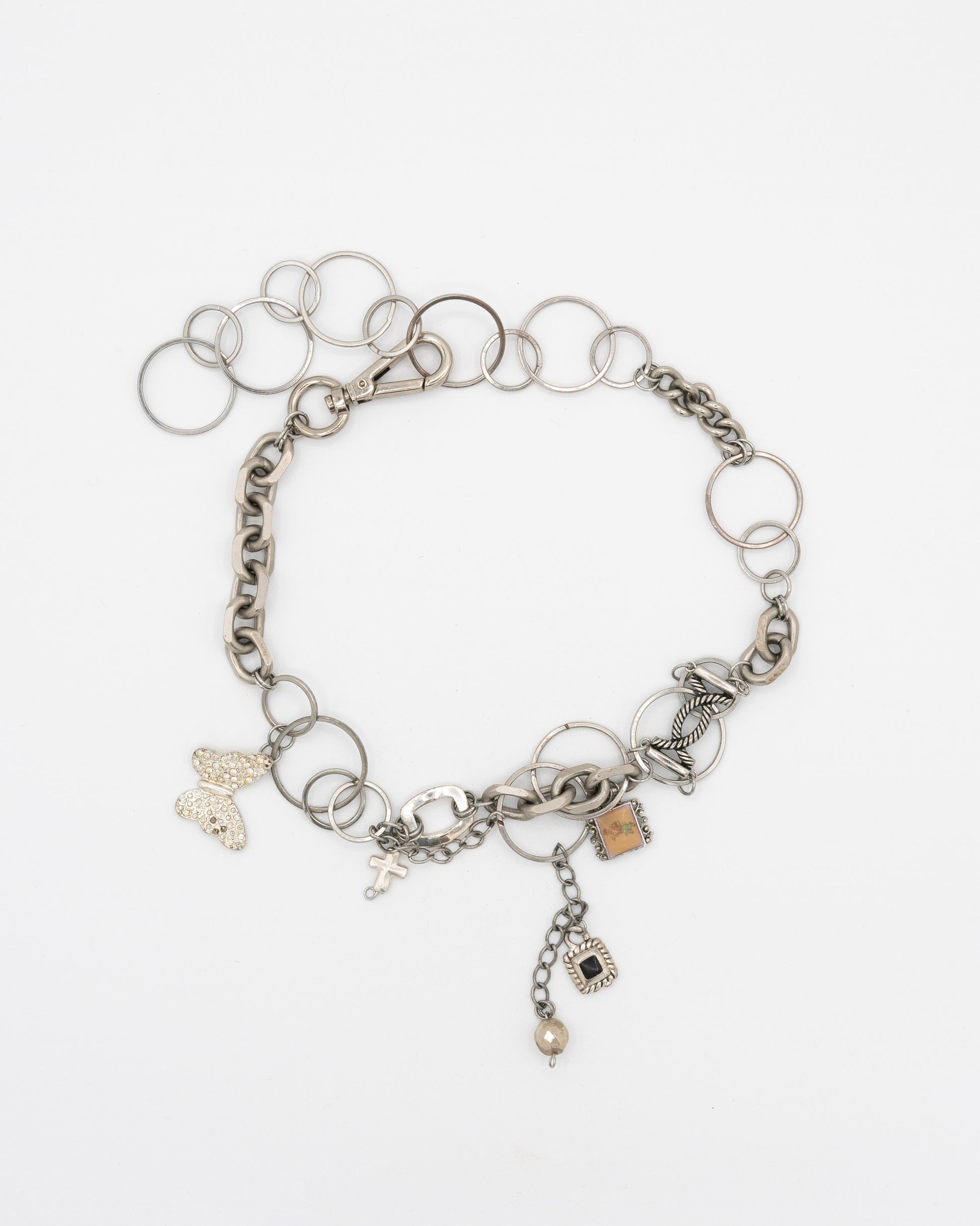 One of one silver chain made from collected chain and charms. Length is fully adjustable: