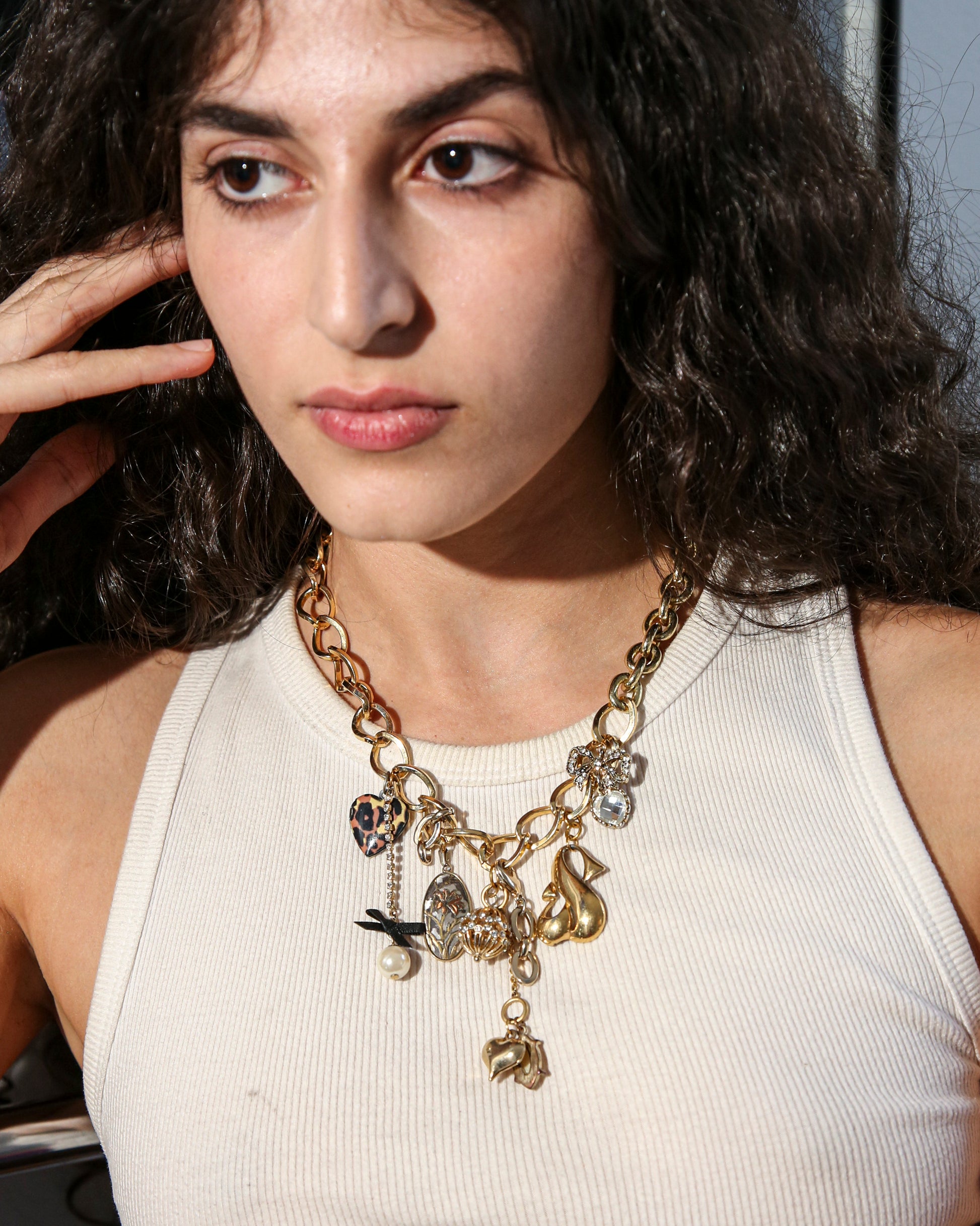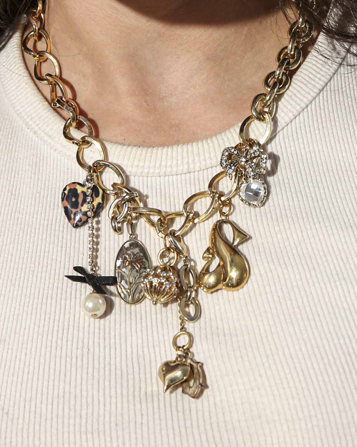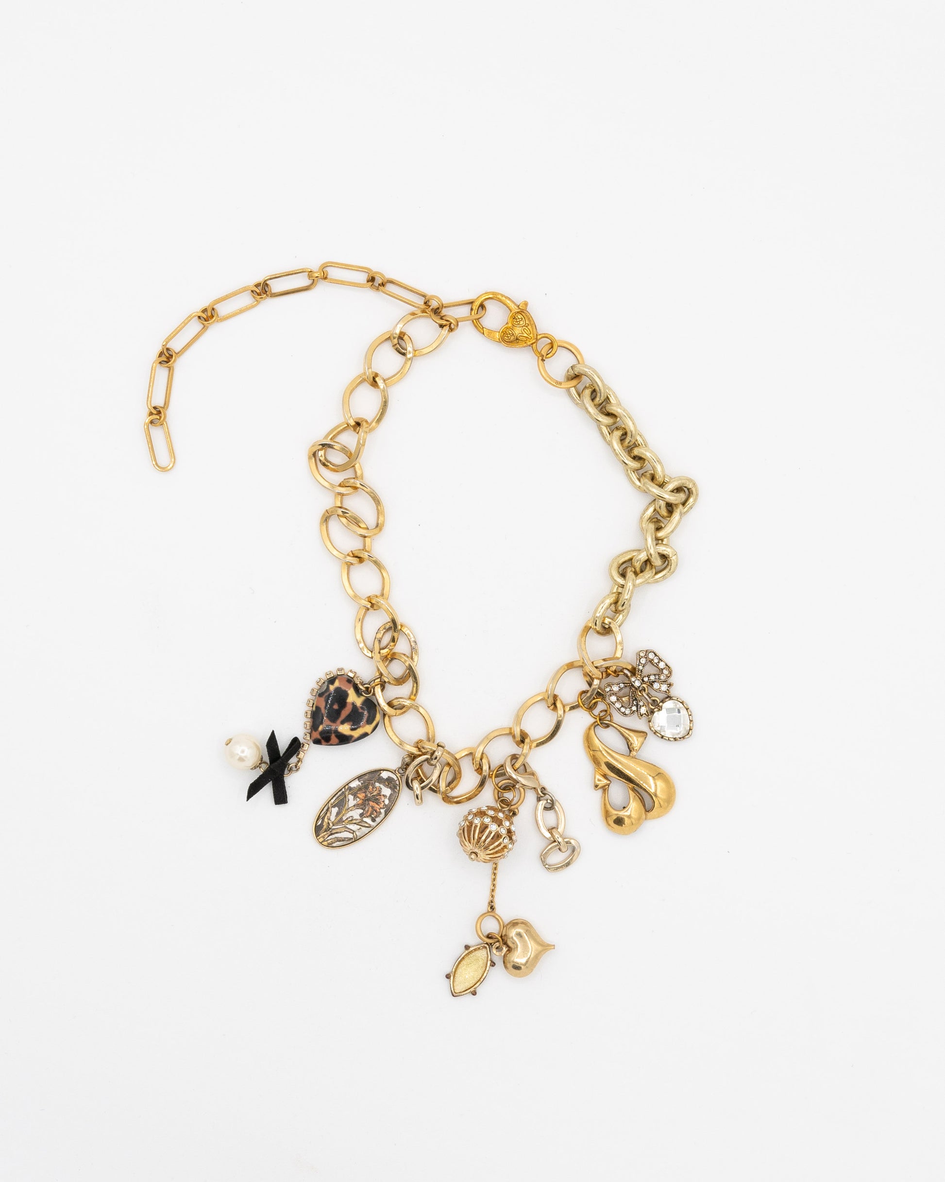 One of one made from collected gold chain and charms. Length is fully adjustable: