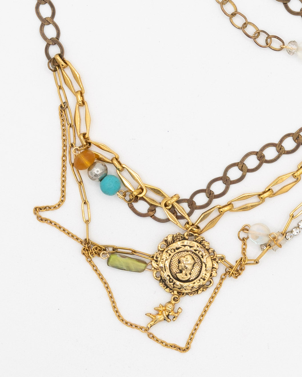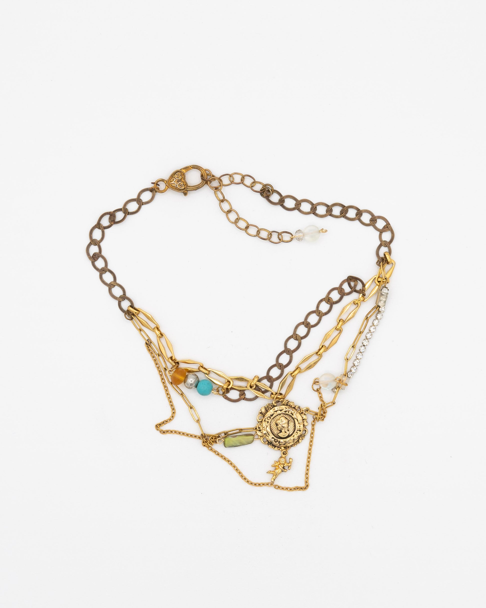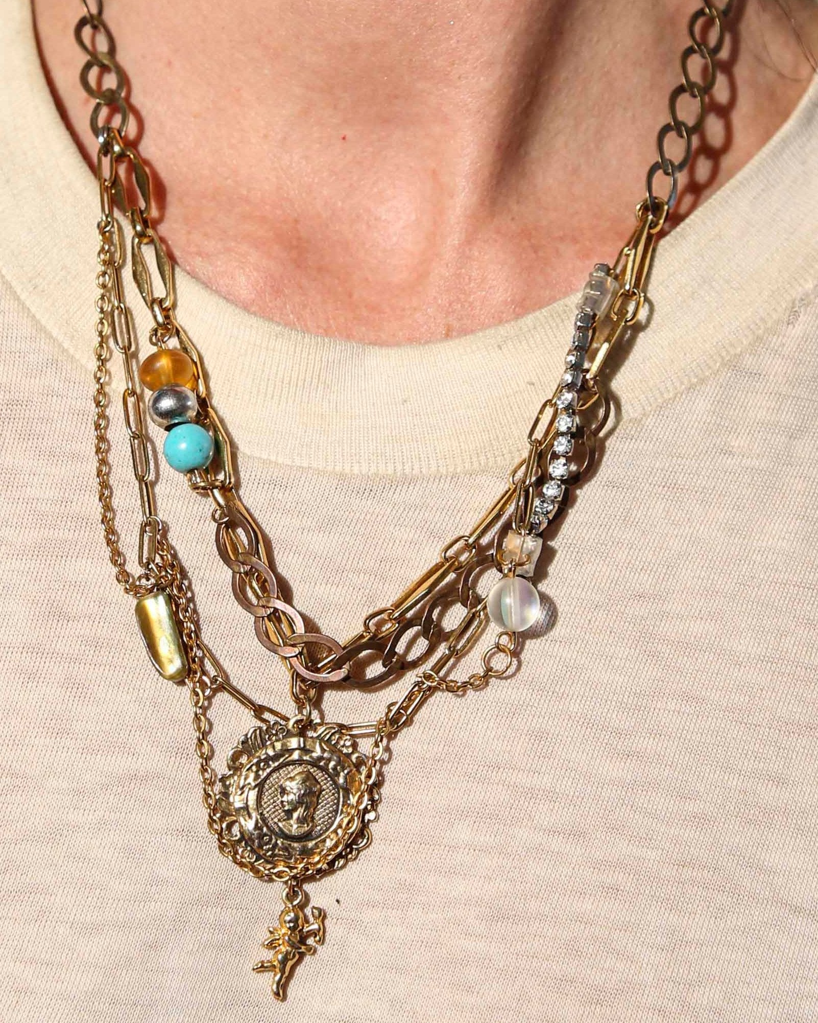 One of one made from collected gold chain and charms. Length is fully adjustable: