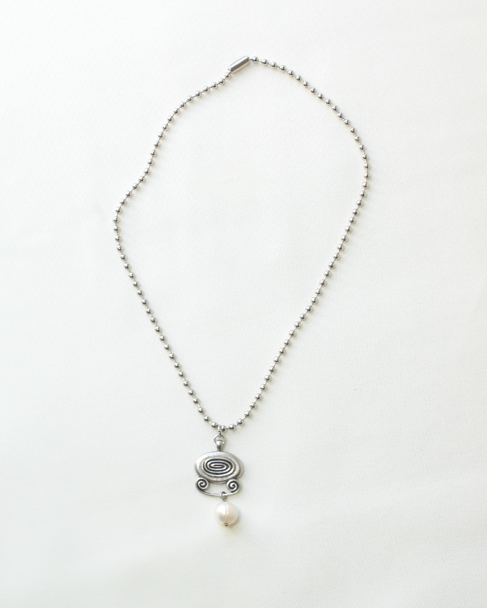 One of one ball and chain necklace with swirl and pearl charm. Chain can be shortened upon request through instagram dm @mouthofpearls