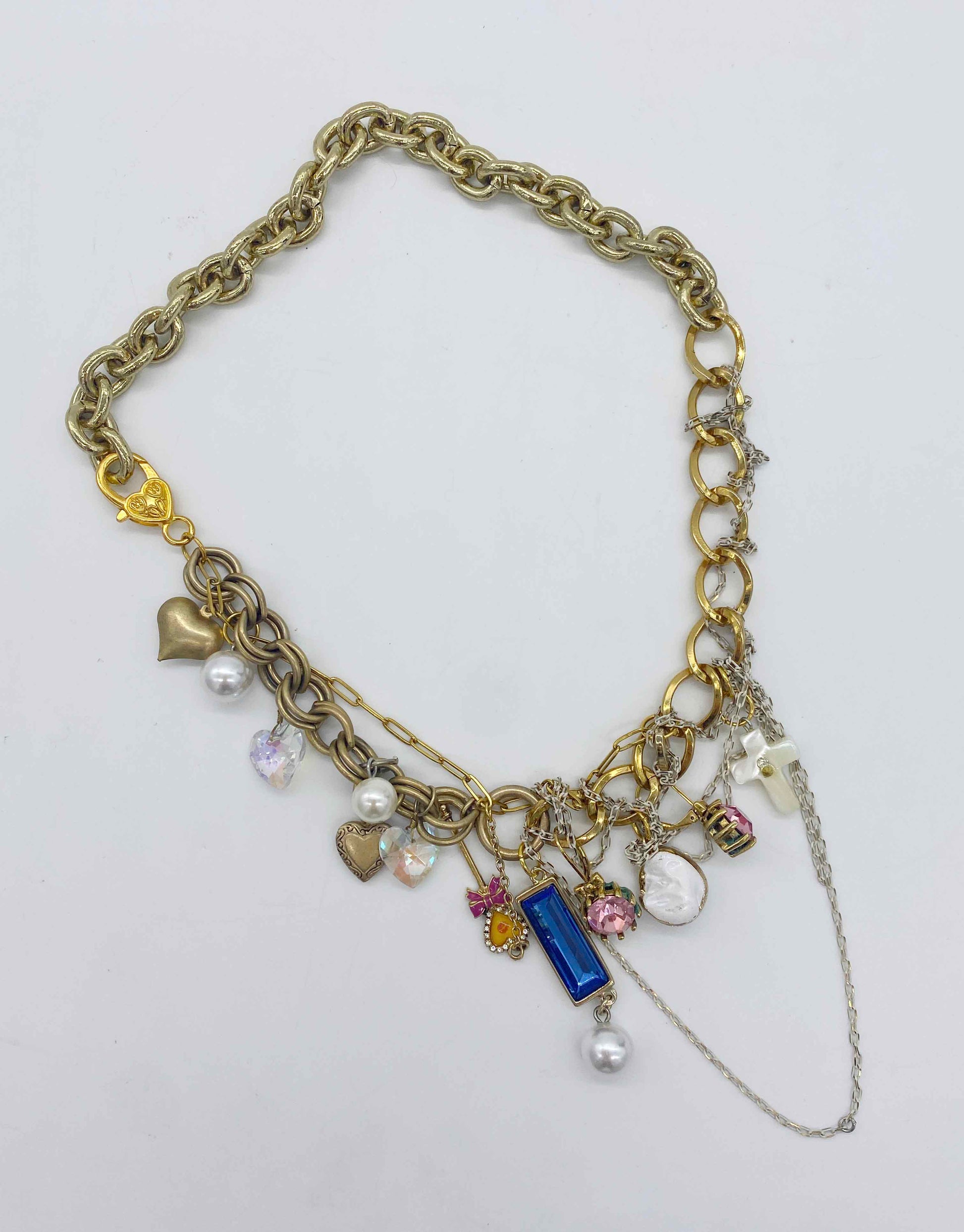 One of one made from collected gold chain and charms. Length is fully adjustable: